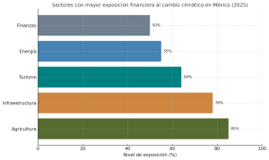 Gráfico: Sectores con mayor exposición financiera al cambio climático en México (2025)